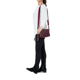 Materials: Nappa leather outer, Saffiano lining, 100% cotton twill shoulder strap
